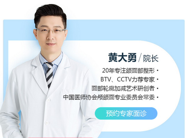 执业医师编号110110105006905 黄大勇,副主任医师, 2000年毕业于首都医科大学,现任北京圣嘉荣医疗美容医院院长,拥有扎实的颅颌面专业背景和16年整形美容经验。